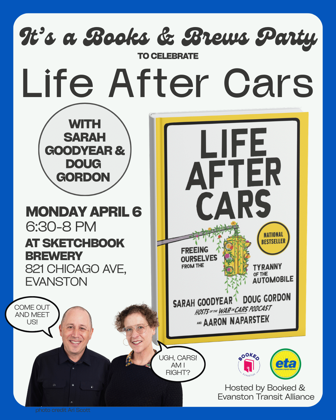 Support Pro-Bike Businesses: This event is sponsored by Booked Evanston and Sketchbook Brewery, champions of the Chicago Ave Protected Bike Lane project.