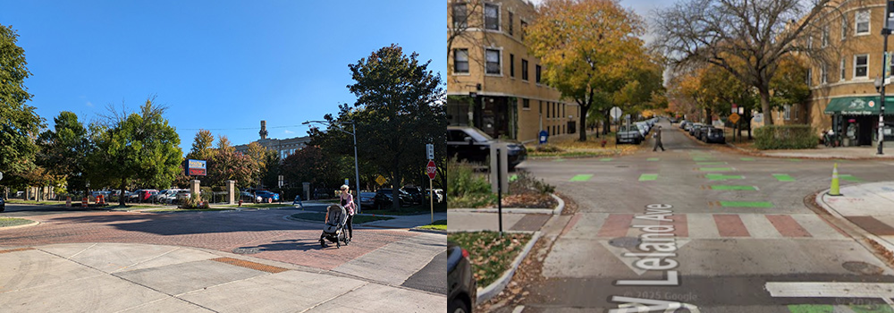 Chicago has installed many protected intersections, including those pictured below in the Portage Park neighborhood at Berteau and Long Ave in front of an elementary school and in the Ravenwood neighborhood at Damen and Leland, which sees significant traffic for cars, bikes, and pedestrians.