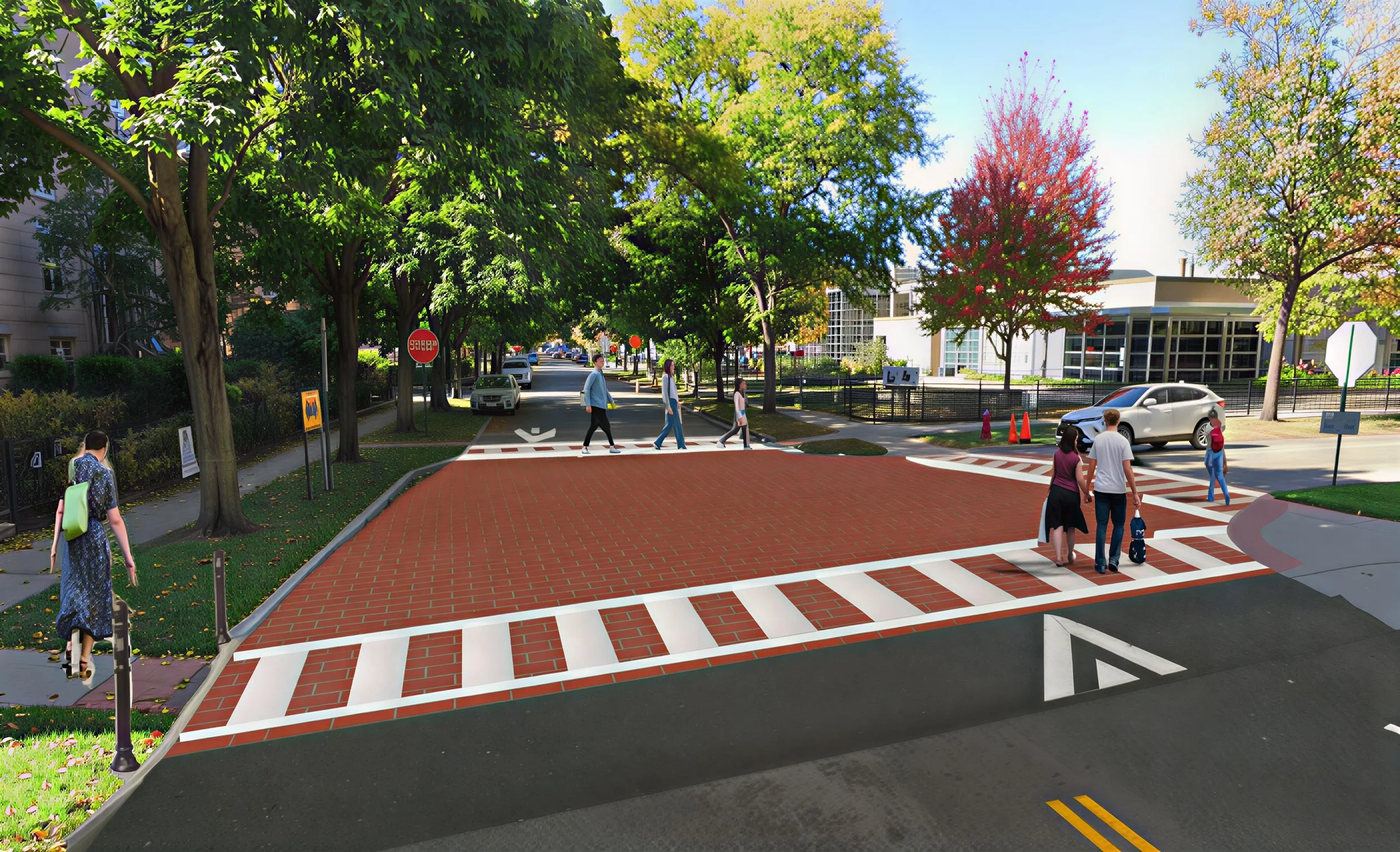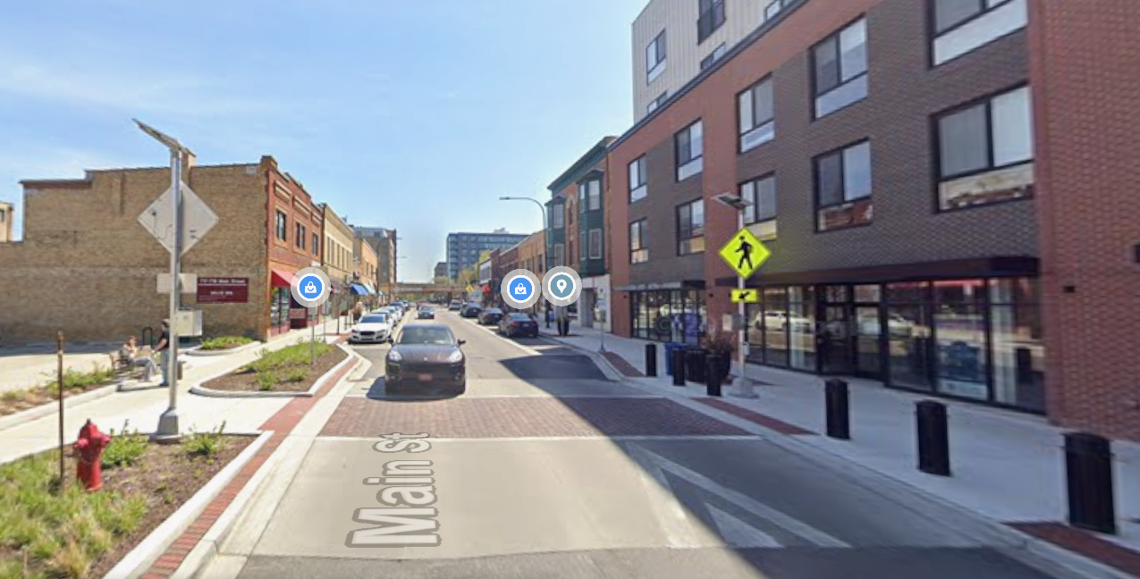 Evanston installed a raised crosswalk on Main St near Sherman Ave. Taking a trip to see this raised pedestrian infrastructure in use can be helpful for visualizing what a raised intersection would look like, as it’s essentially the same concept only slightly larger.